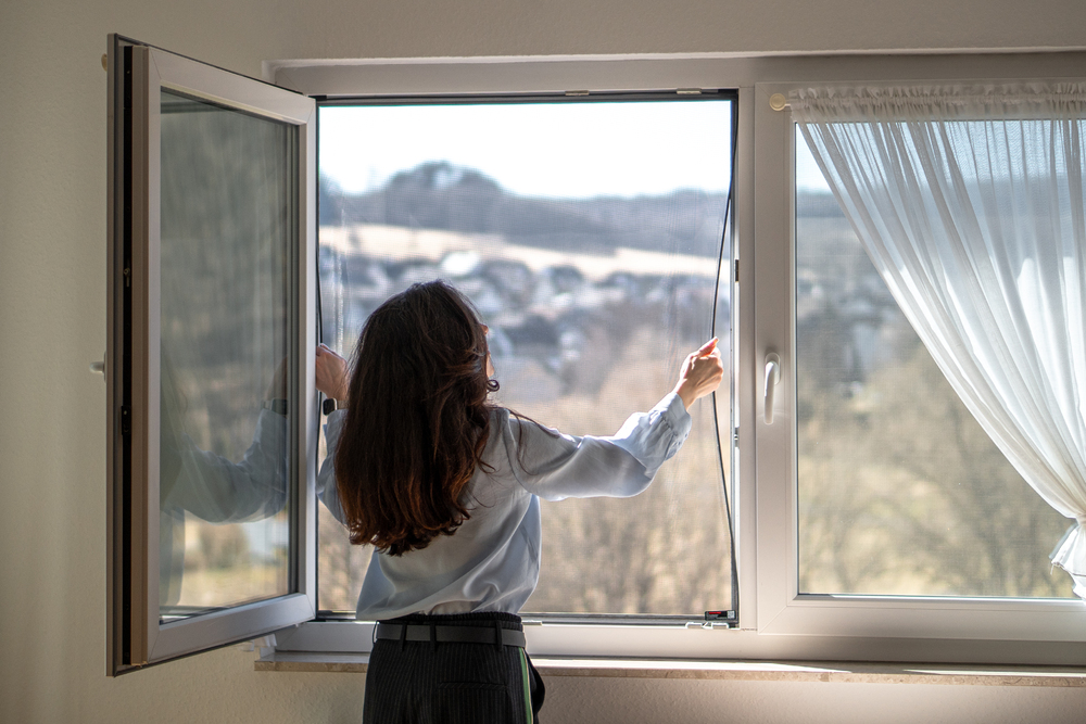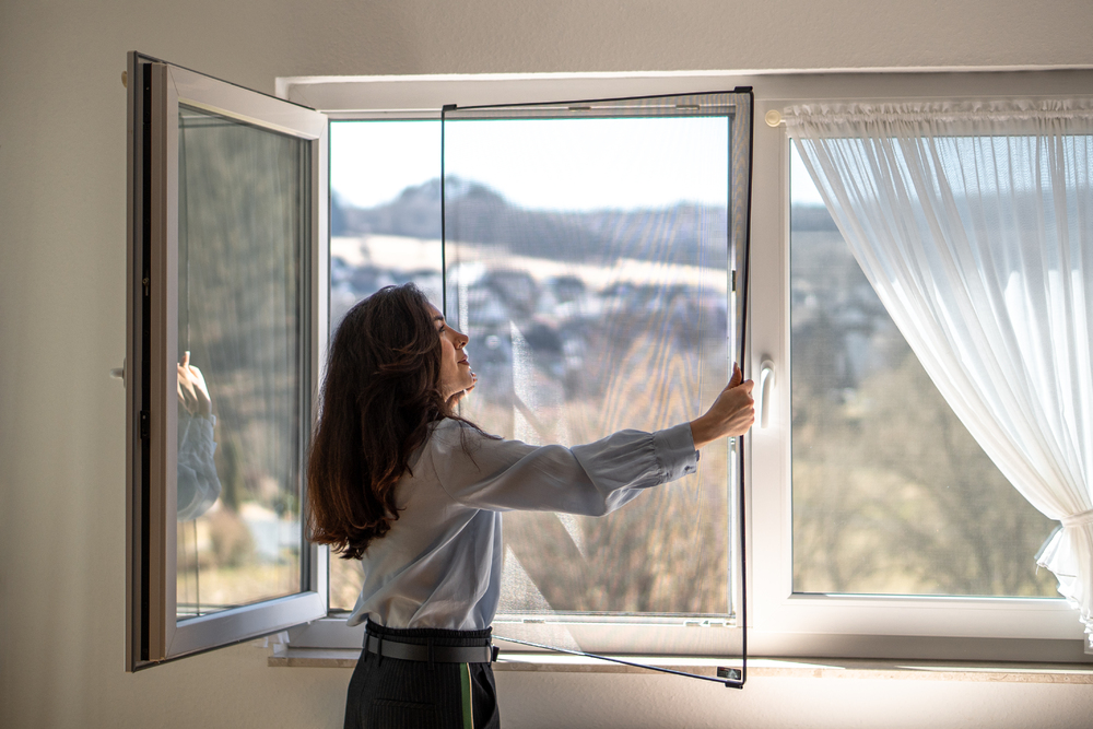 Plasă anti-insecte FlexScreen instalată în interiorul ramei ferestrei