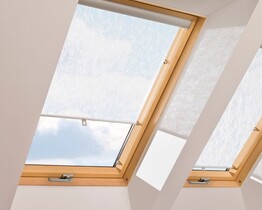 Jaluzelele de acoperiș are fabric blinds (classicşiblackout), blindsşipleats (pleated blinds). The setting of the fabric of the fabric roller blinds is manually adjusted. Blackout material is gummedşiprovides 100% darkening of the room. Roof window louvers operate in the same way as those intended for vertical windows. They are made of horizontal lamellas, which are placed in smooth side guides. The guides keep the shutter slats in place. Pleats are an interesting solution. Their fabric is placed between two slats, which, however, are not on the sides, but in the upperşilower part of the cover. This allows you to slide the material from aboveşibelow. The roller blind can therefore be located in the central part of the window pane. In addition, the cover looks very decorative, because its material, as the name suggests, is pleated.