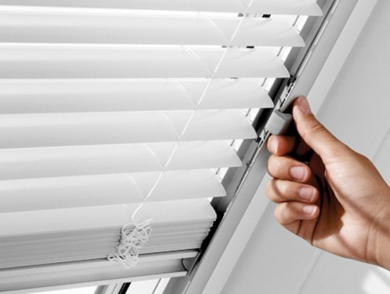 Jaluzelele venețiene acționate manual sunt extrem de ușor de utilizat. Spre deosebire de jaluzelele tradiționale, nu sunt necesare cabluri sau corzi pentru a acționa jaluzelele venețiene VELUX.
